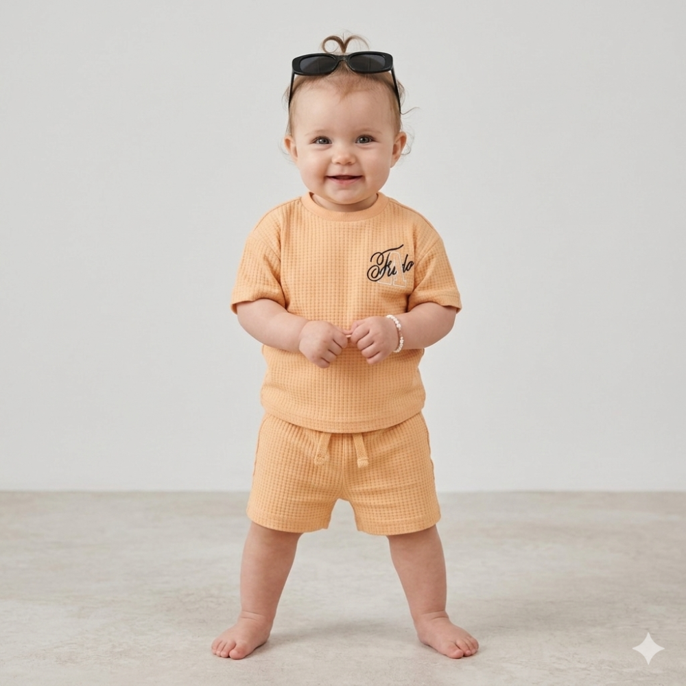 F09394INF: Baby Boys Waffle Fabric T-Shirt & Short Outfit With Sunglasses (12-24 Months)