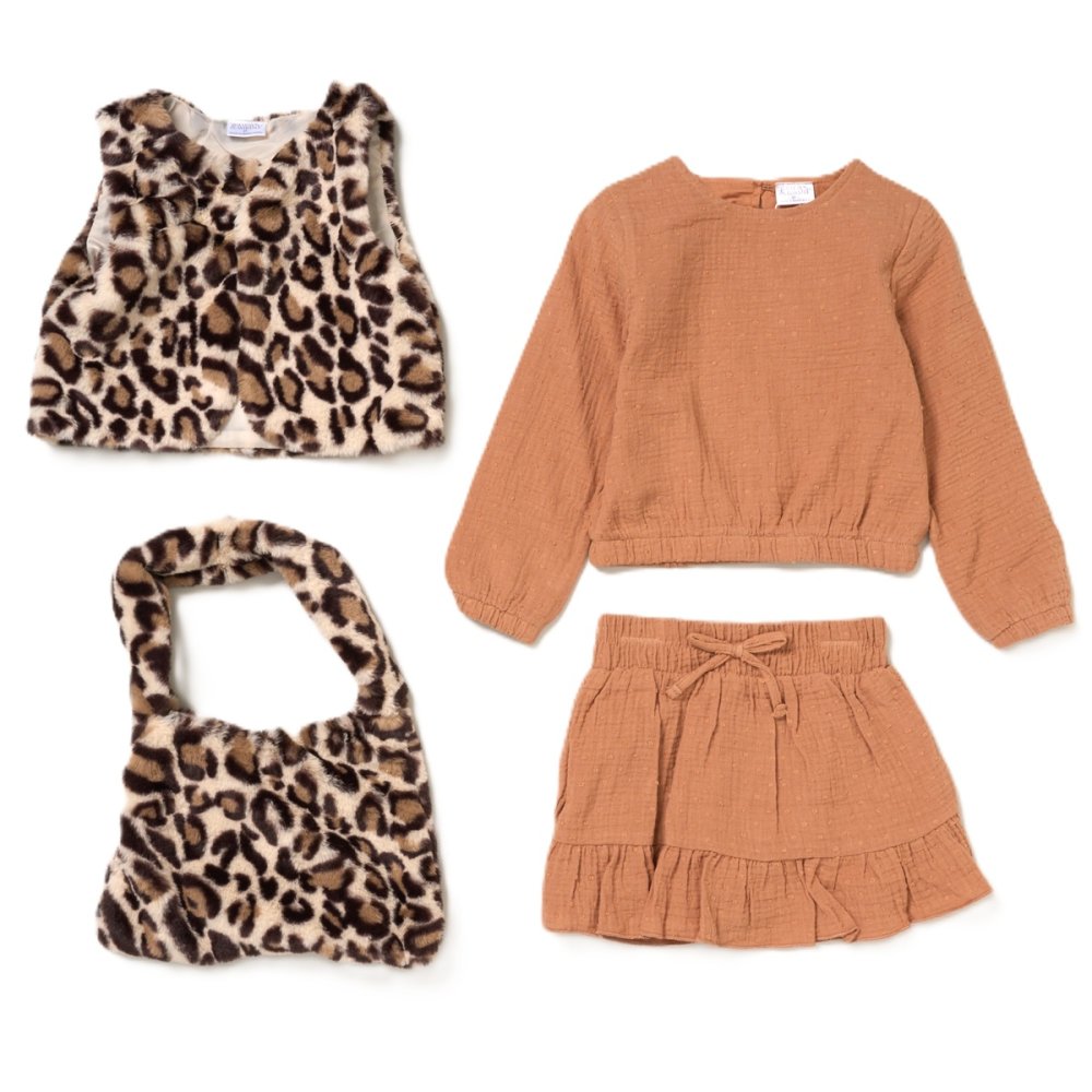 G10936TOD: Girls Faux Fur Gilet, Top, Crepe Skirt & Handbag Outfit (2-4 Years)