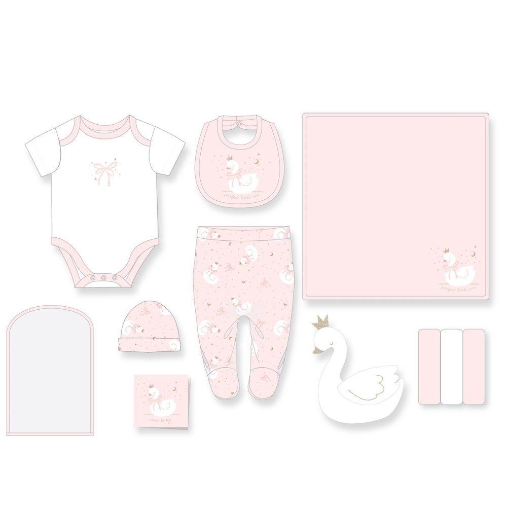 G11038: Baby Girls Swan 10 Piece Mesh Bag Gift Set (NB- 6 Months)