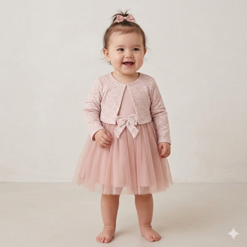 G12942INF: Baby Girls Mock Bolero Mesh Skirt Dress (6 Months - 3 Years)