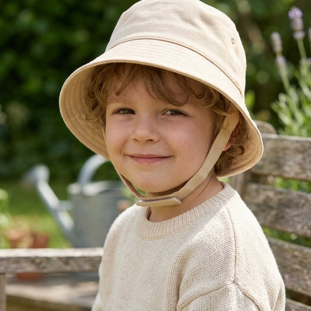0193X-Biscuit: Infants Plain Biscuit Bucket Hat With Chin Strap (1-4 Years)