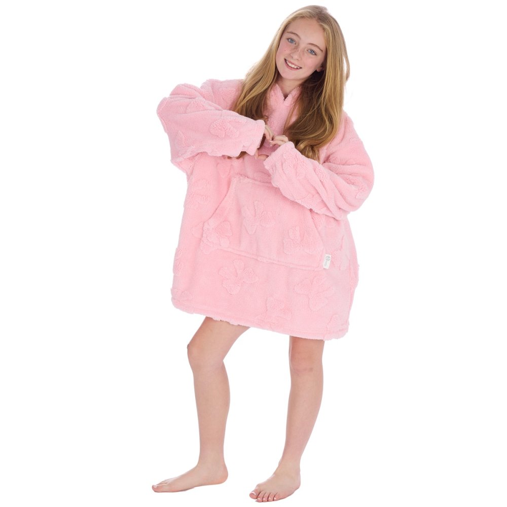 18C1036: Older Kids Clipped Bows Oversized Plush Hoodie (One Size - 7-13 Years)