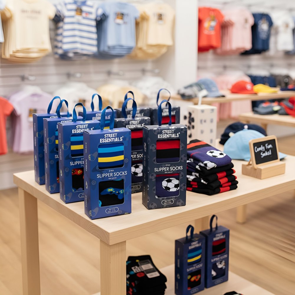 42B830: Boys Boxed 2 Pack Cotton Rich Design Ankle Socks with Grippers (Assorted Sizes)