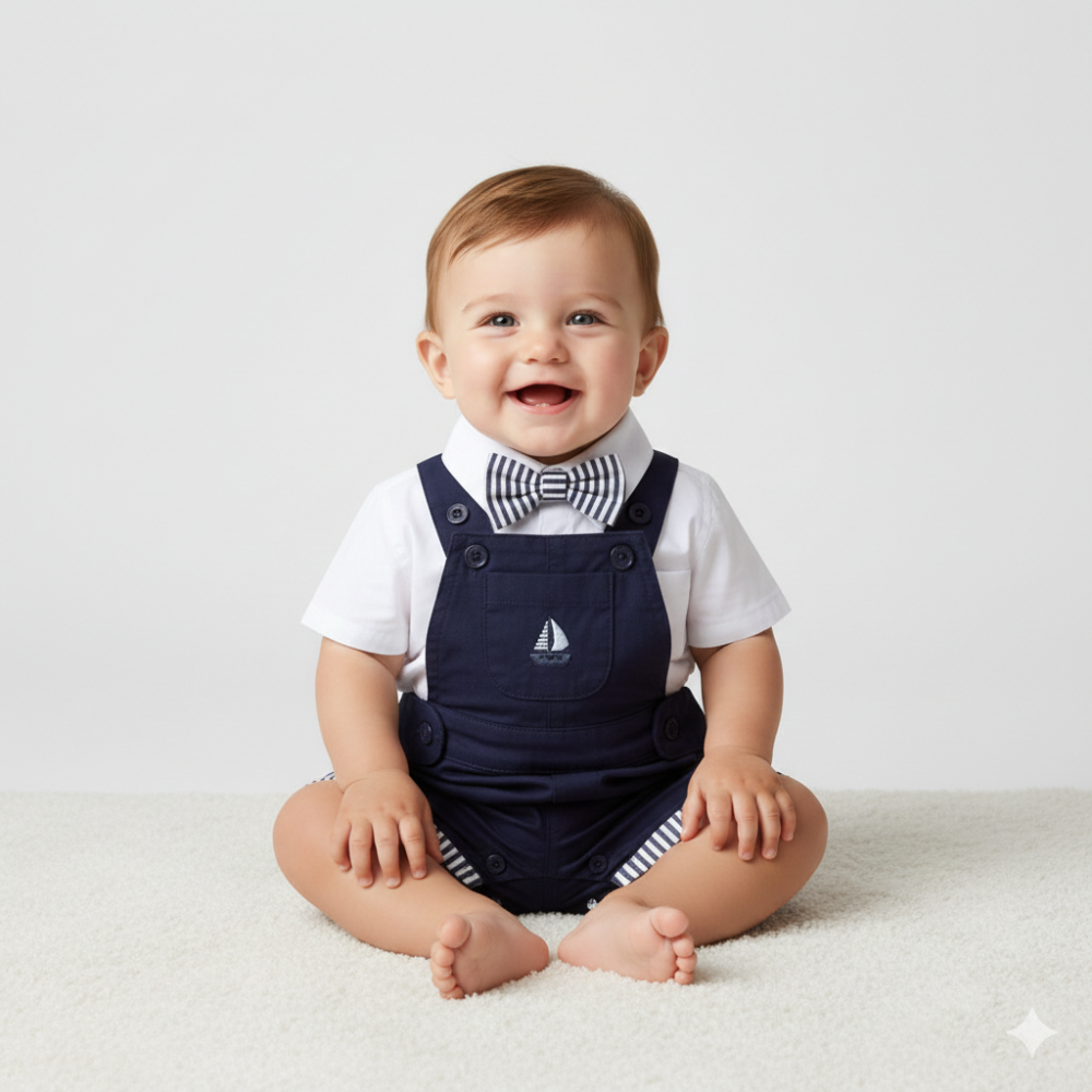 F08891NB: Baby Boys Dungaree & Bodysuit Shirt With Bow Tie Outfit (3-9 Months)