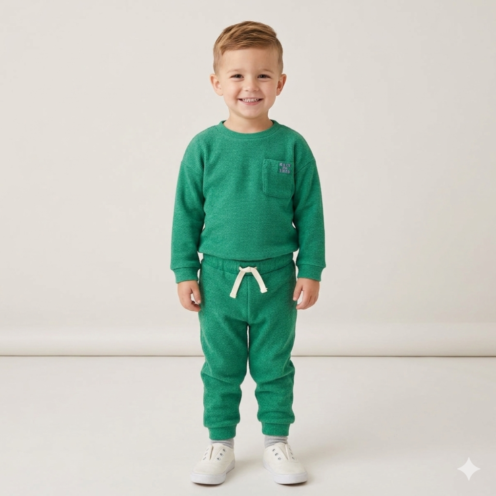 G10891TOD: Kids Green Brushed Rib Sweatshirt & Jog Pant Outfit (2-4 Years)