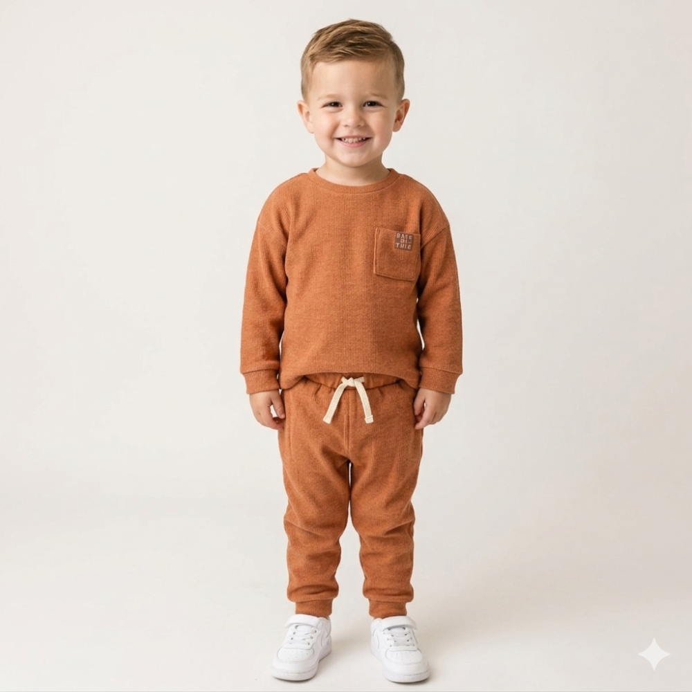 G10892TOD: Kids Orange Brushed Rib Sweatshirt & Jog Pant Outfit (2-4 Years)