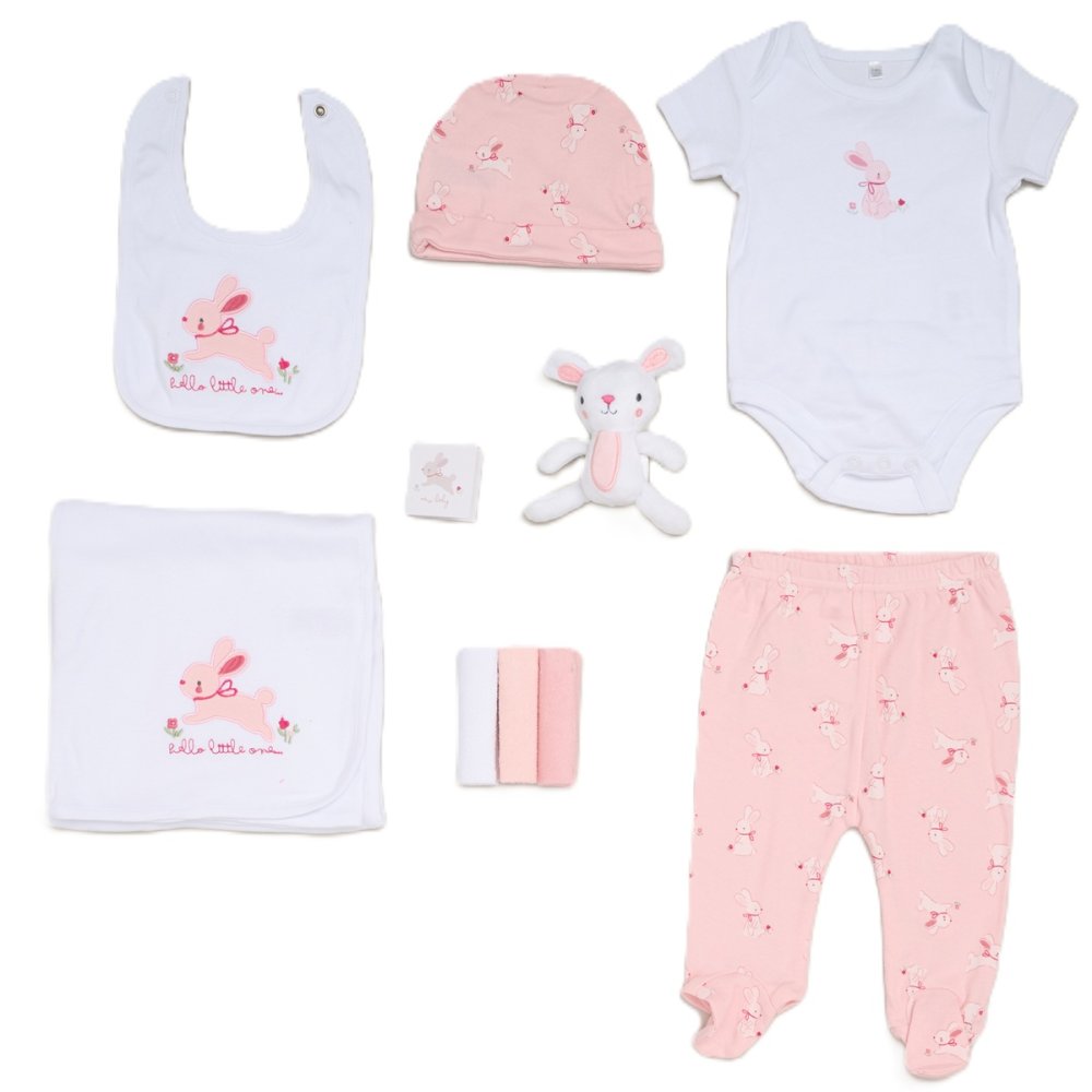 G11744: Baby Girls Bunny 10 Piece Mesh Bag Gift Set (NB- 6 Months)