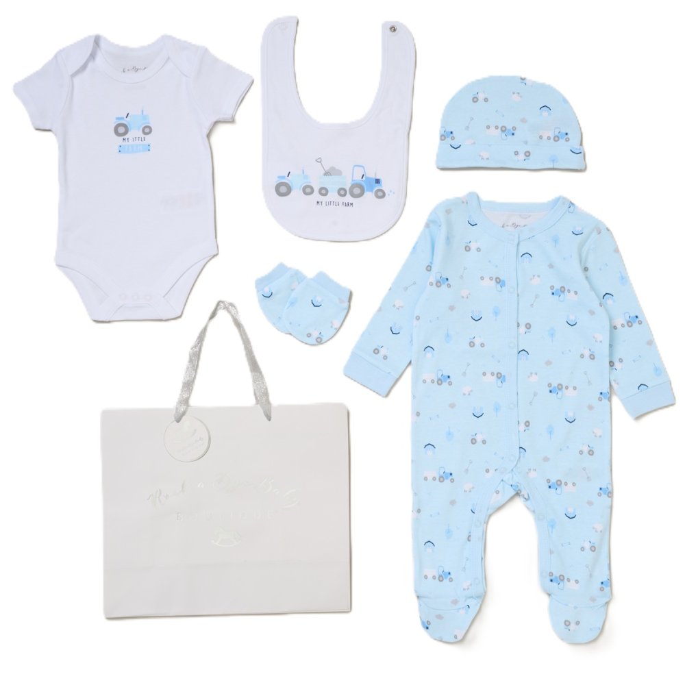 G11820NB: Baby Boys Farm 6 Piece Mesh Bag Gift Set (NB-6 Months)