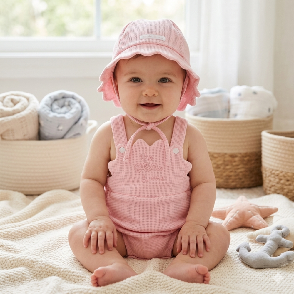 F09020NB: Baby Girls Waffle Fabric Romper & Hat Set (0-12 Months)