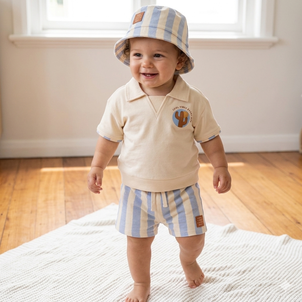 H12875INF: Baby Boys Polo Top, Shorts & Bucket Hat Outfit (9-24 Months)