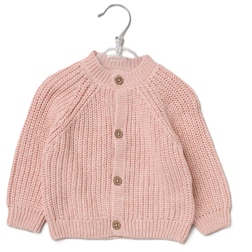H13663NB: Baby Pink Cotton Knit Cardigan With Embroidery Detail- Sister (0-12 Months)