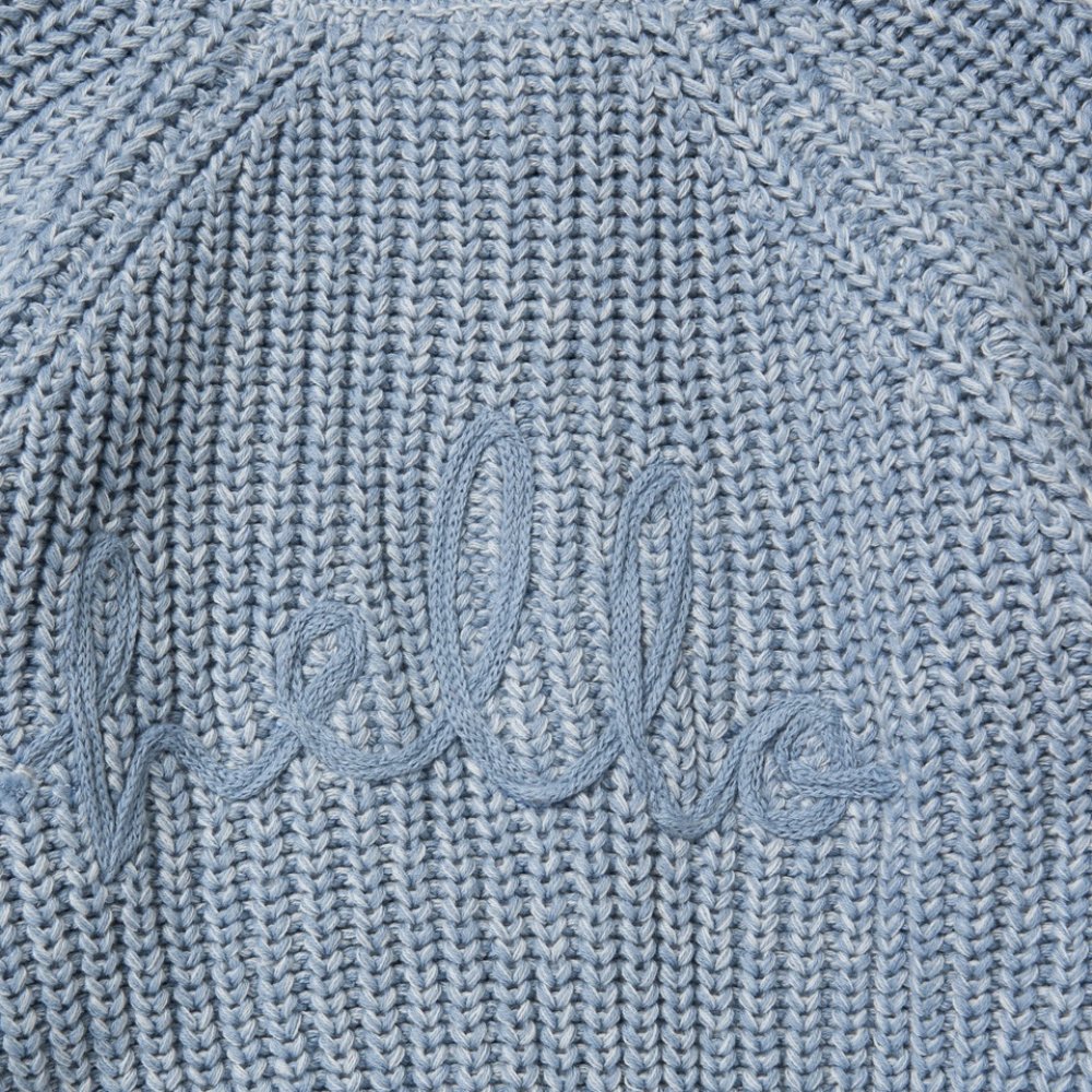 H13664NB: Baby Blue Cotton Knit Cardigan With Embroidery Detail- Hello (0-12 Months)