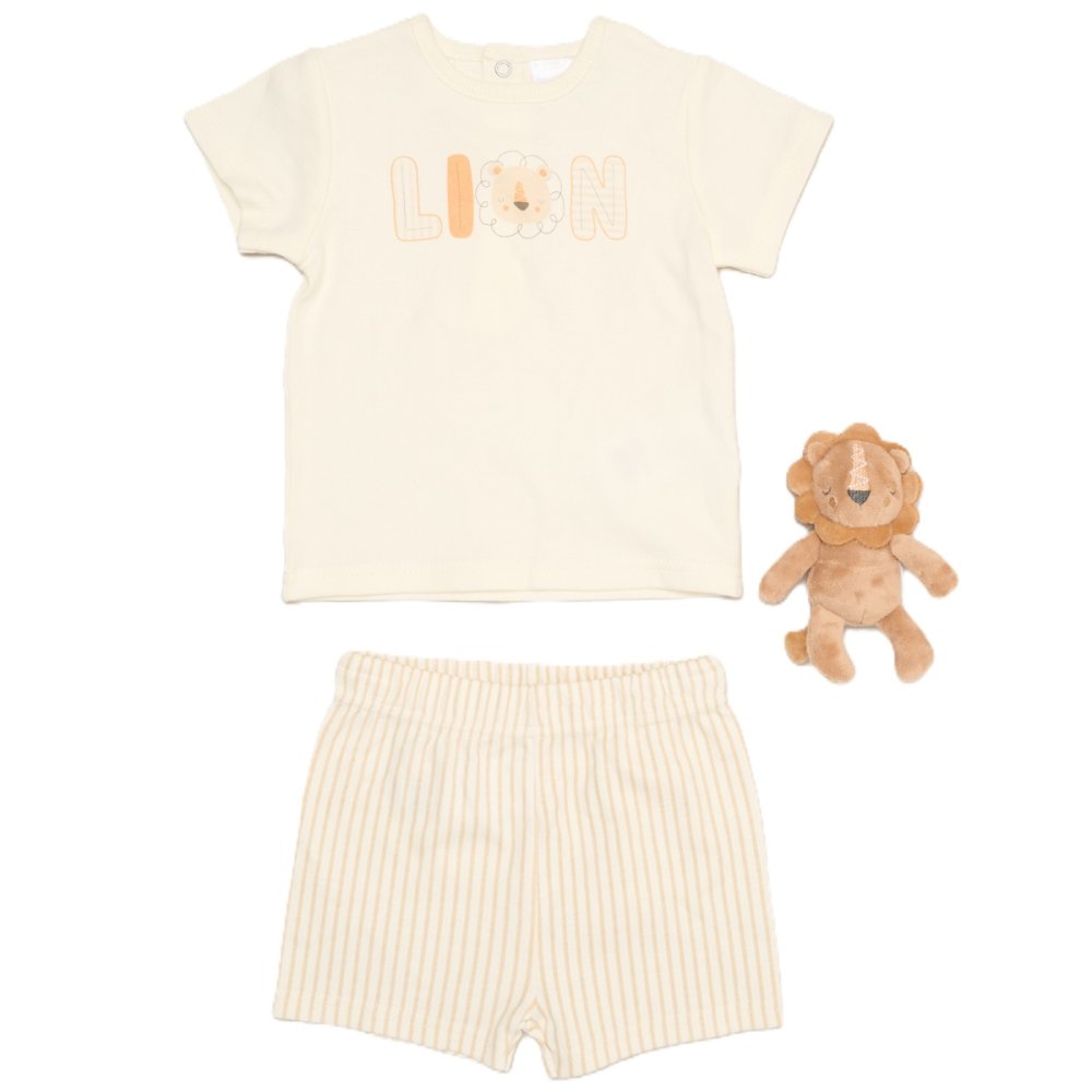H14309NB: Baby Boys Lion T-Shirt, Shorts & Plush Toy Set (0-9 Months)