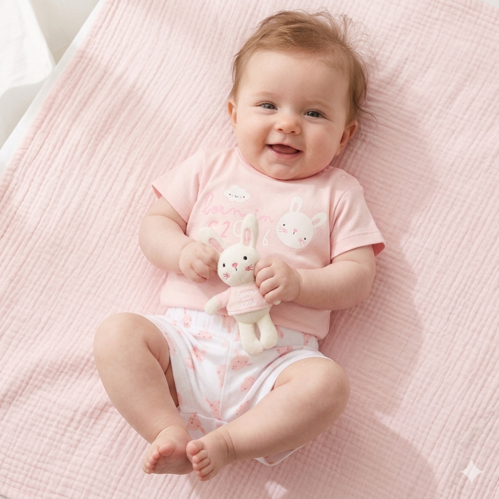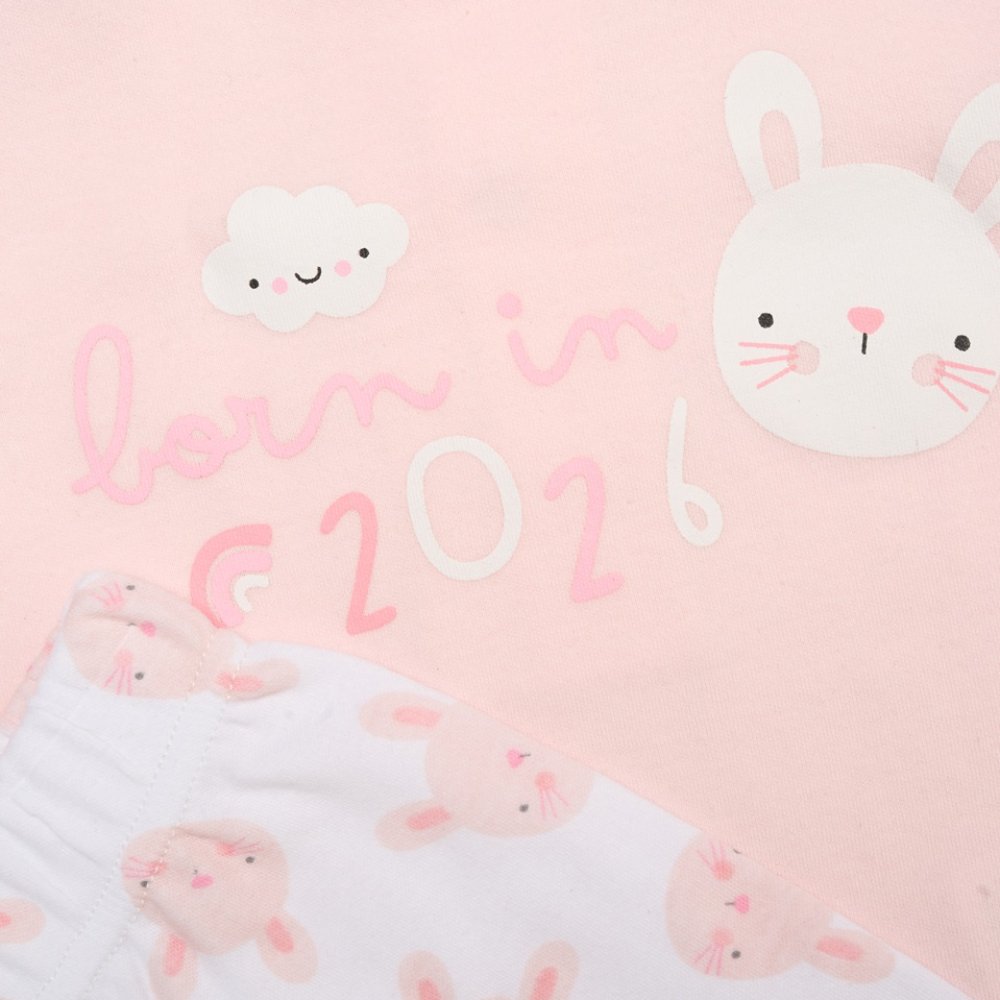 H14312NB: Baby Girls Bunny T-Shirt, Shorts & Plush Toy Set- Born In 2026 (0-9 Months)