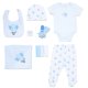 Description : 10 Piece net bag  gift set including Bib, Bodyvest, Hat, Trouser, 3 x wash cloths, Gift Card, Blanket & Soft Toy
