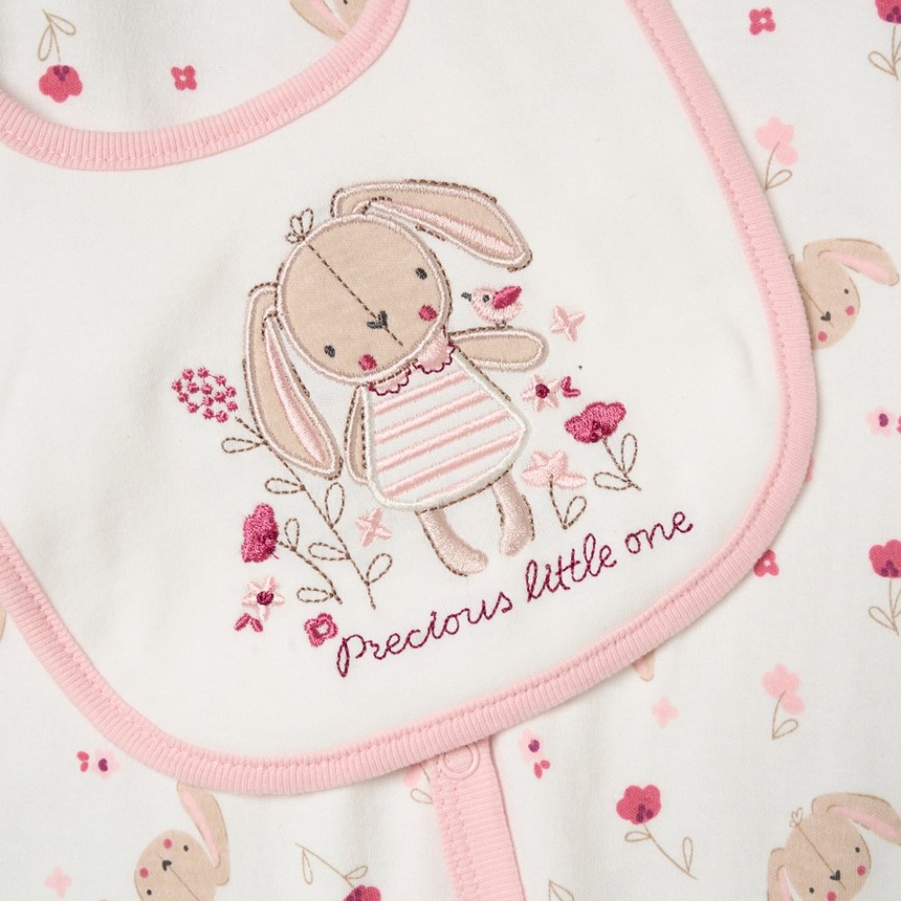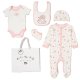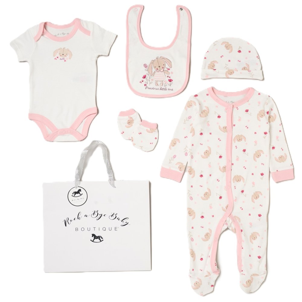 H15038NB: Baby Girls Bunny 6 Piece Mesh Bag Gift Set (NB-6 Months)