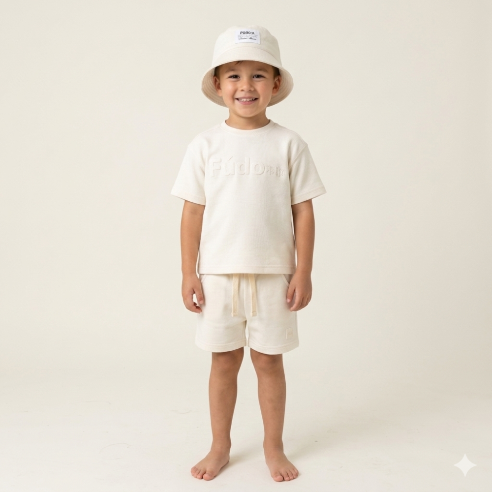 F09346TOD: Boys Heavyweight Fabric T-Shirt & Short Outfit With Bucket Hat (2-4 Years)