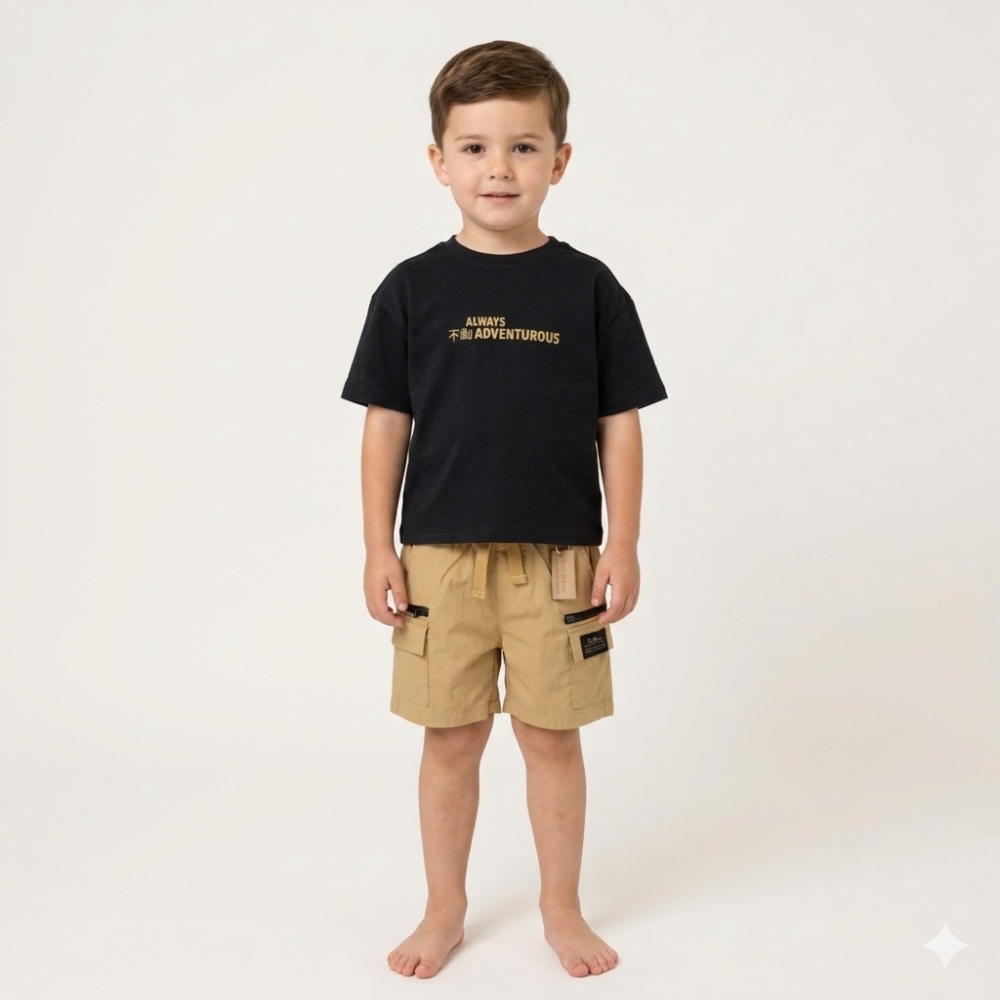 F09386TOD: Boys T-shirt & Waterproof Coated Short Outfit With Keyring (2-4 Years)
