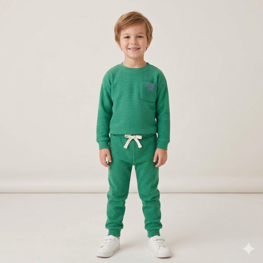 G10891LB: Older Kids Green Brushed Rib Sweatshirt & Jog Pant Outfit (5-7 Years)