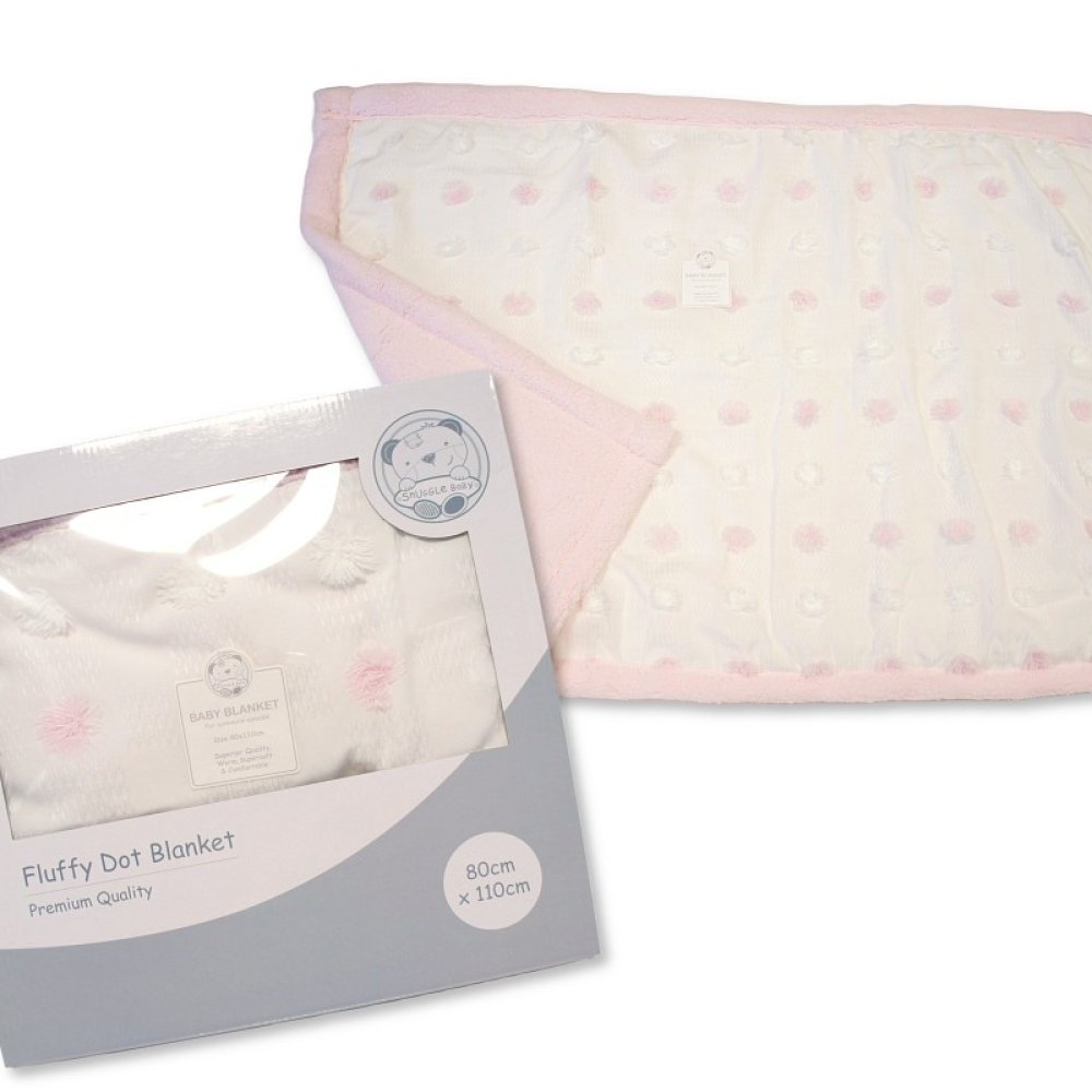 BW-112-2021P: Luxury Fluffy Baby Pram Blanket with Dots in Box- Pink