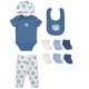 Description : 10 Piece gift set including Bib, Hat, Bodysuit, Trouser and 6 pairs of Socks