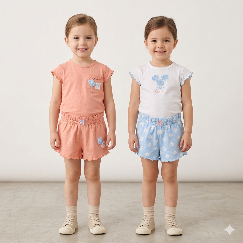 F09100TOD: Girls 2 T-Shirts & 2 Shorts Set (2-4 Years)