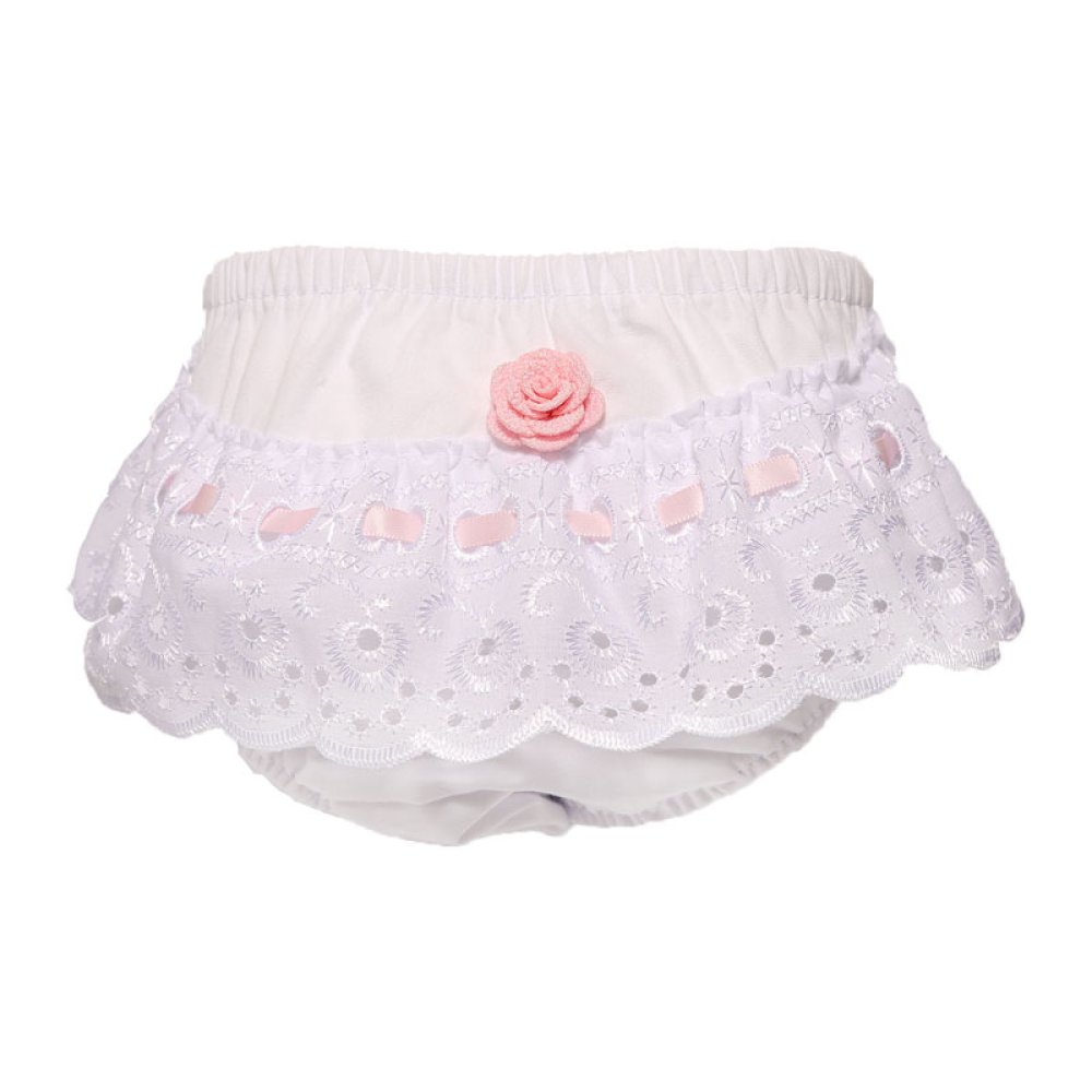 FP16-P: White/Pink Cotton Frilly Pants (NB-18 Months)