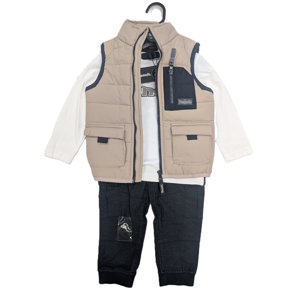G10923: Boys Bench Puffer Gilet, Top & Denim Cargo Pant Outfit (18 Months-5 Years)