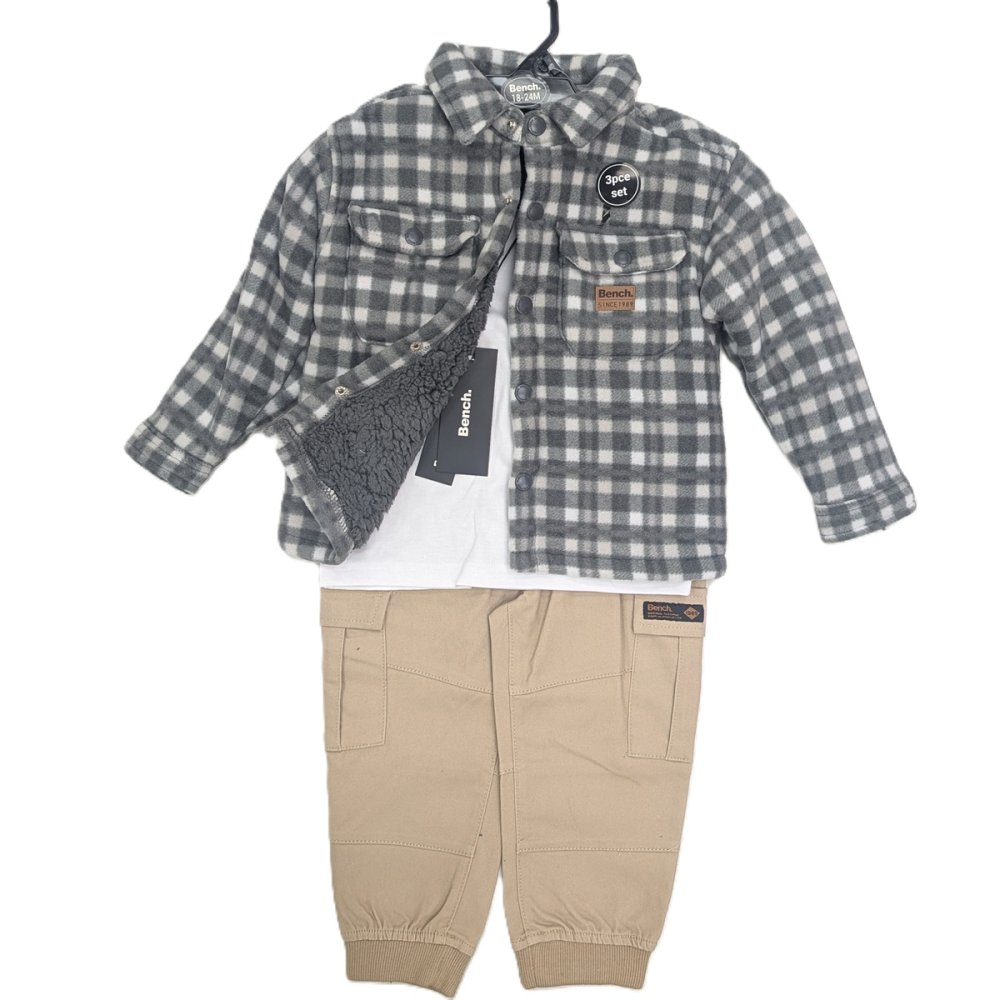 G10925: Boys Bench Sherpa Lined Shacket, Top & Cargo Pant Outfit (18 Months-5 Years)