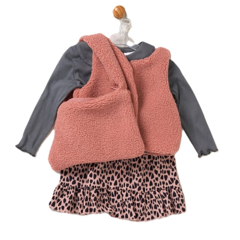 G10937TOD: Girls Borg Gilet, Top, Crepe Skirt & Handbag Outfit (2-4 Years)