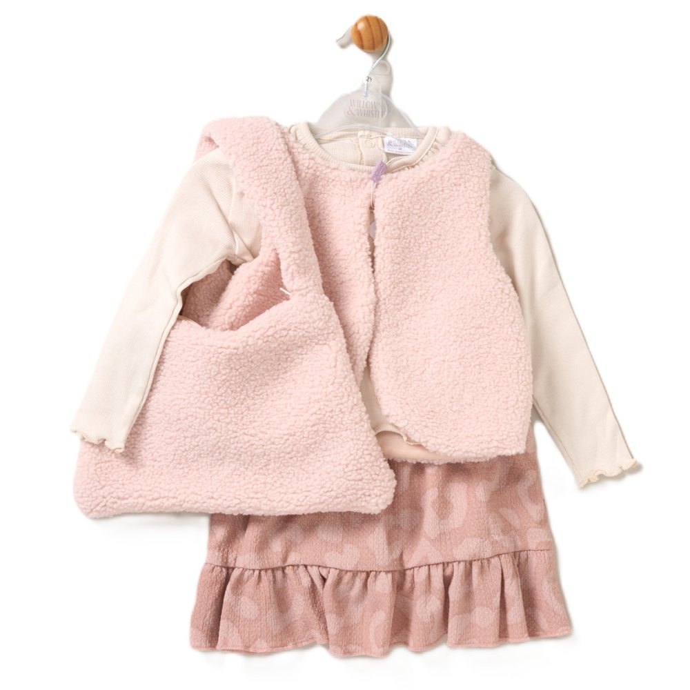 G10940TOD: Girls Borg Gilet, Top, Crepe Skirt & Handbag Outfit (2-4 Years)