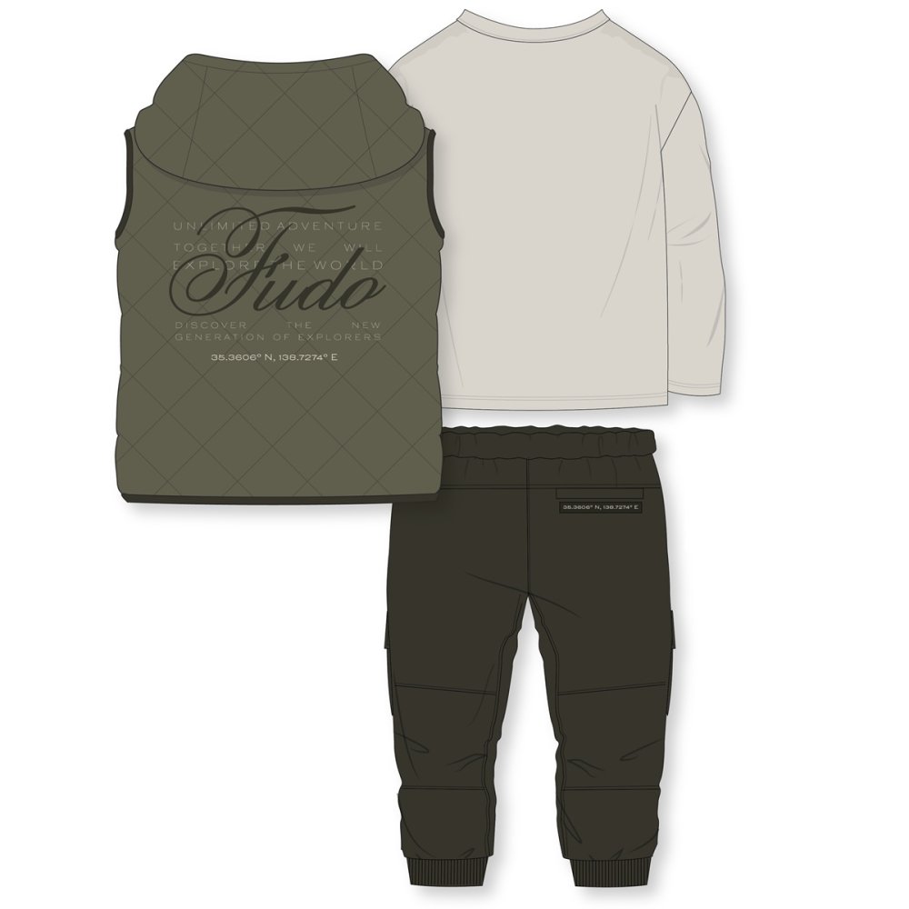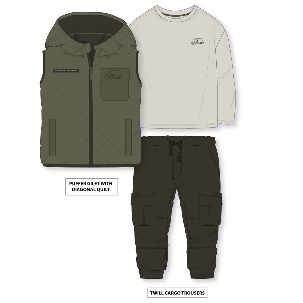 G11316TOD: Boys Quilted Gilet, Top & Cargo Pant Outfit (2-4 Years)