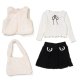 G11323TOD: Girls Faux Fur Gilet, Top, Crepe Skirt & Handbag Outfit (2-4 Years)