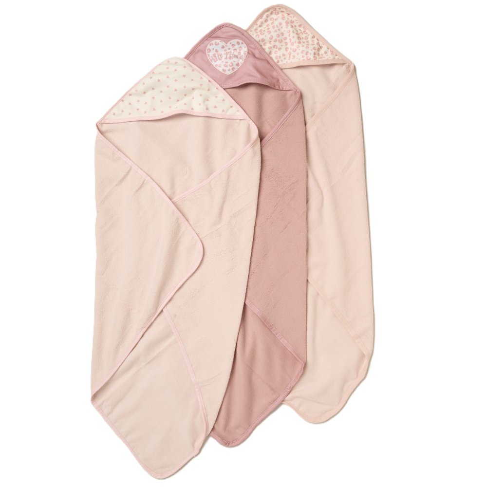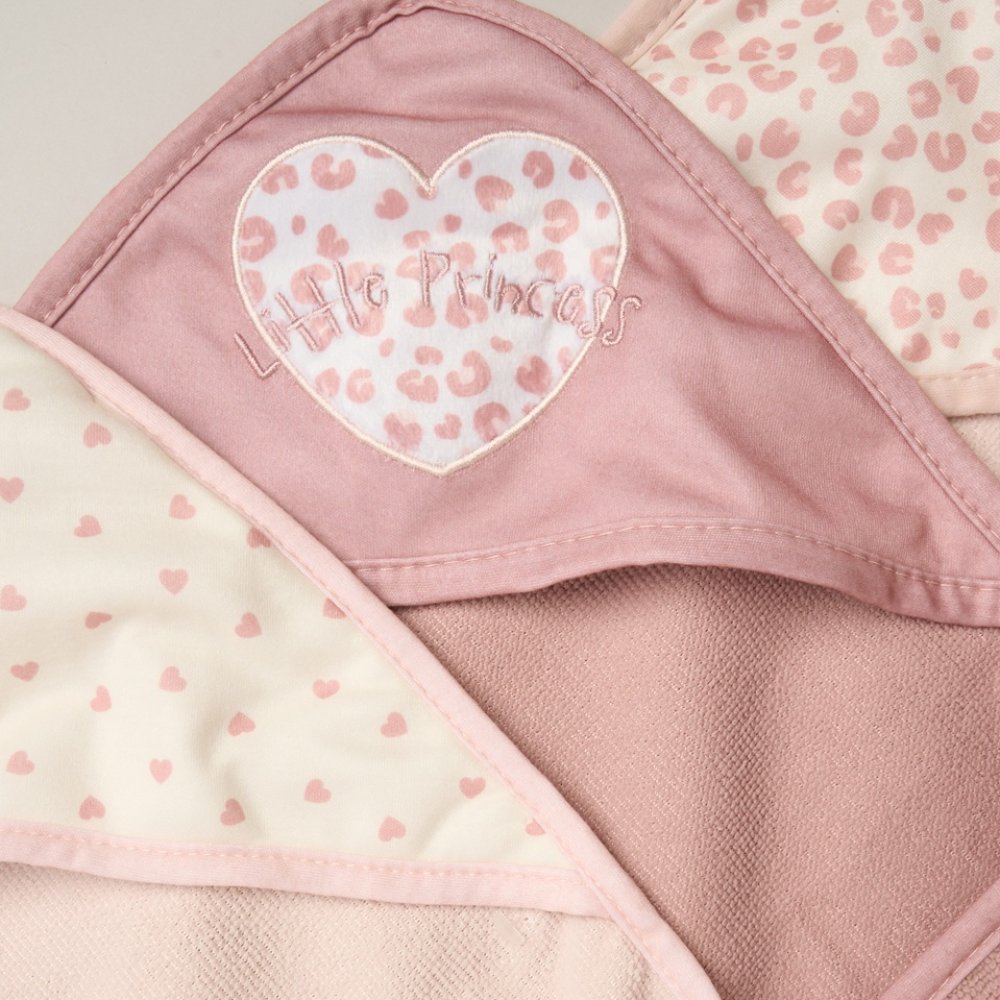 G11381: Baby Girls Hearts 6 Piece Hooded Towels & Washcloths Bath Time Set