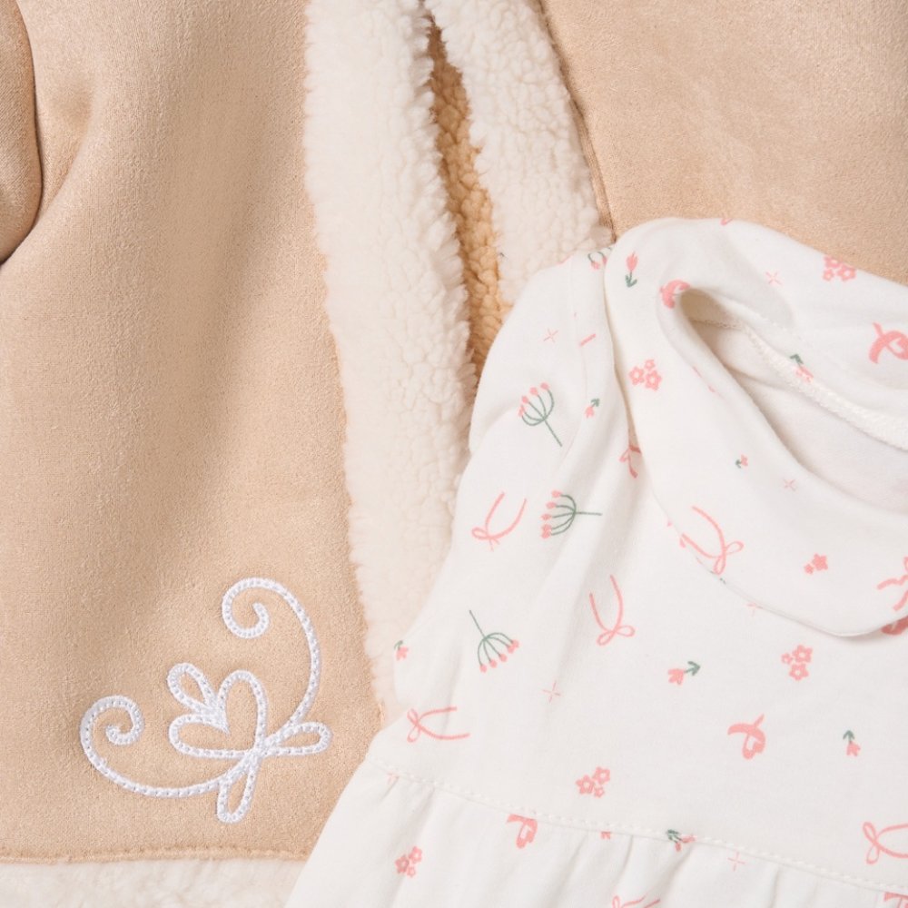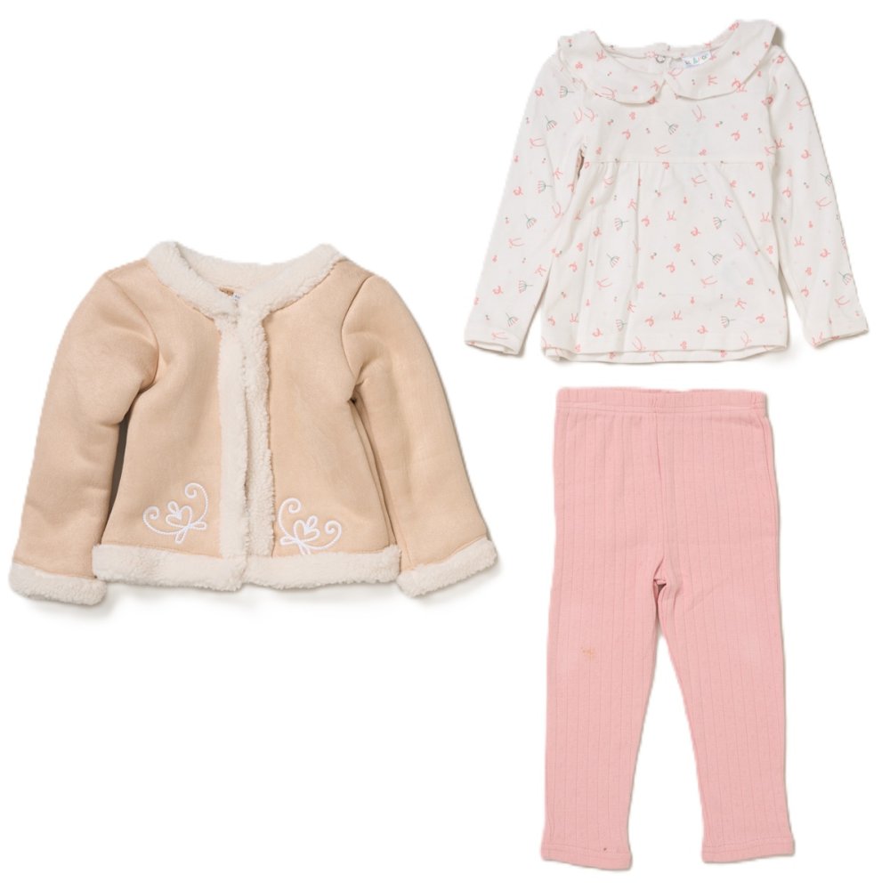 G11617INF: Baby Girls Shearling & Borg Jacket, Top & Pointelle Leggings (12-24 Months)