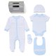 Description : 6 Piece net bag  gift set including Bib, Bodyvest, Hat, Sleepsuit, Mittens and Gift Box