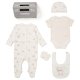 Description : 6 Piece net bag gift set including Bib, Bodyvest, Hat, Sleepsuit, Mittens and Gift Box