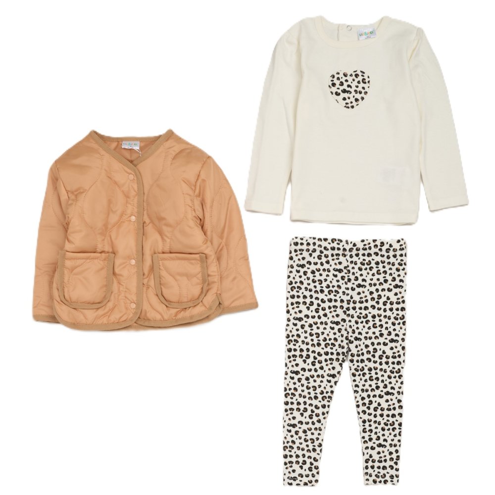 G10804TOD: Girls Quilted Jacket, Top & Legging Outfit (2-4 Years)