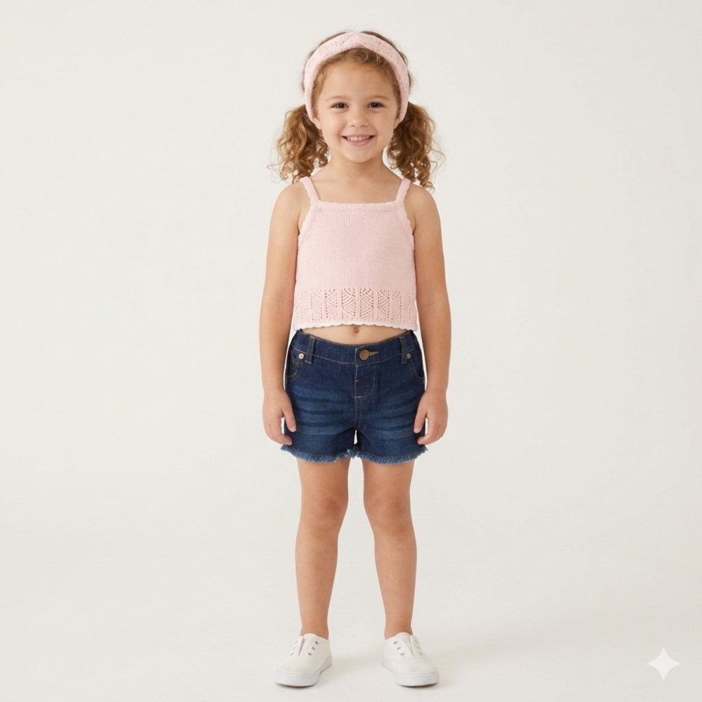F10390TOD: Girls True Knit Top, Denim Short & Headband Outfit (2-4 Years)