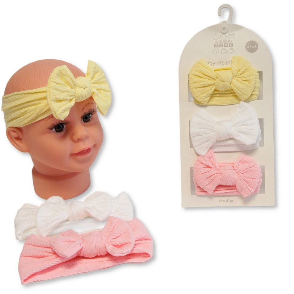 GP-25-1403: Baby Girls 3 Headbands with Bow Set - 3 Colours