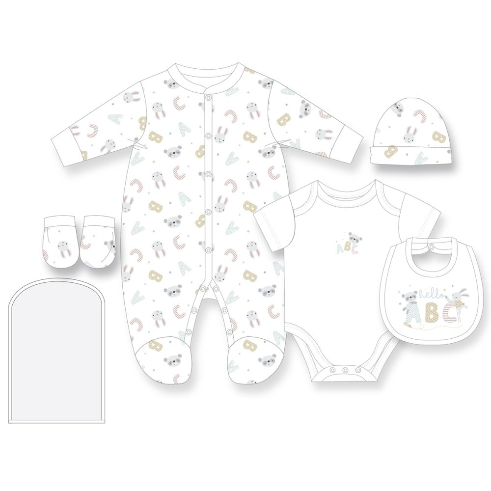 H12777NB: Baby Unisex "ABC" 6 Piece Mesh Bag Gift Set (NB-6 Months)