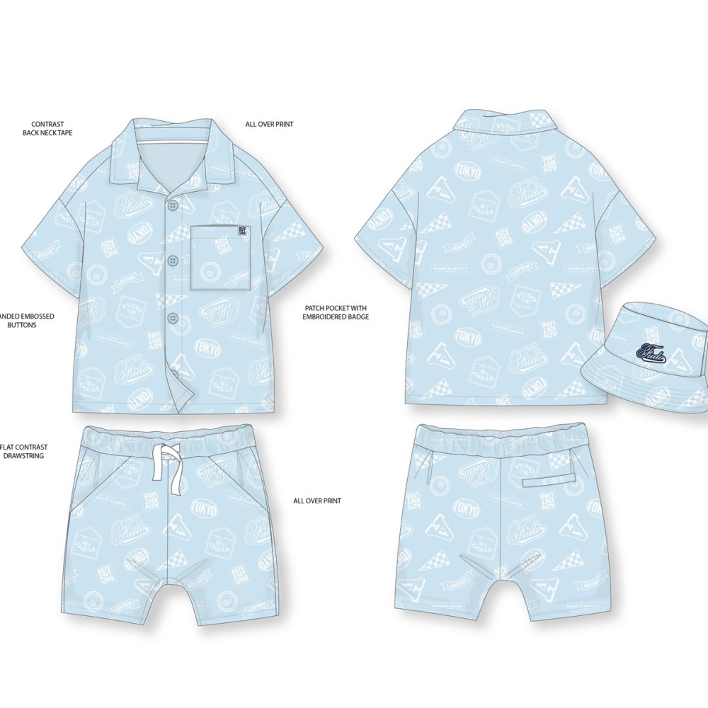 Material: -SHIRT/SHORTS/HAT SHELL FABRIC: AOP 100% WOVEN VISCOSE 112X90/45X45 120GMM (REF.) HAT/SHORTS POCKET LINING: T/C 65/35 110X76/45X45 WOVEN POPLIN DTMSizes: 12, 18, 24 MonthsColour: As Image -