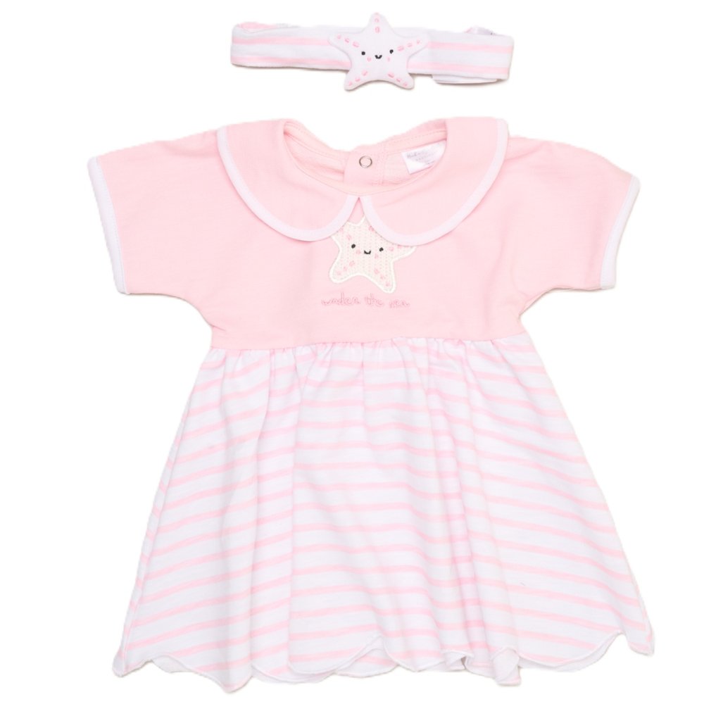 H13163NB: Baby Girls Dress With Crochet Applique & Headband Outfit (0-9 Months)
