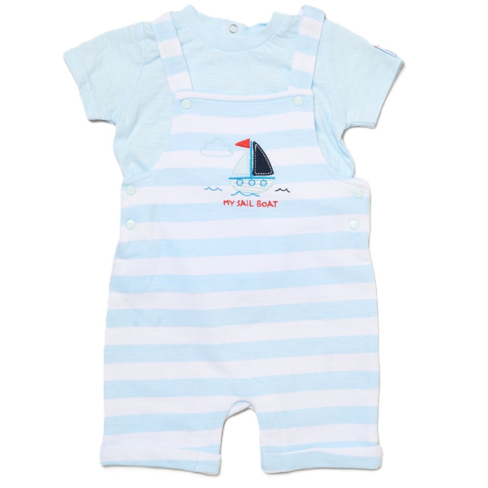 H13194NB: Baby Boys Sailor Dungaree & T-Shirt Set (3-12 Months)