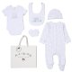 Description : 6 Piece net bag  gift set including Bib, Bodyvest, Hat, Sleepsuit, Mittens and Gift Bag