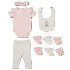 NEW E08703: Baby Girls Organic Cotton 6 Piece Gift Set  (NB-6 Months) E08703: Baby Girls Organic Cotton 6 Piece Gift Set  (NB-6 Months)