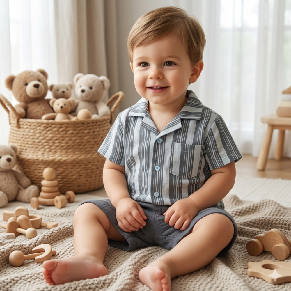 J33963: Baby Boys Muslin Fabric Shirt & Short Outfit (1-2 Years)