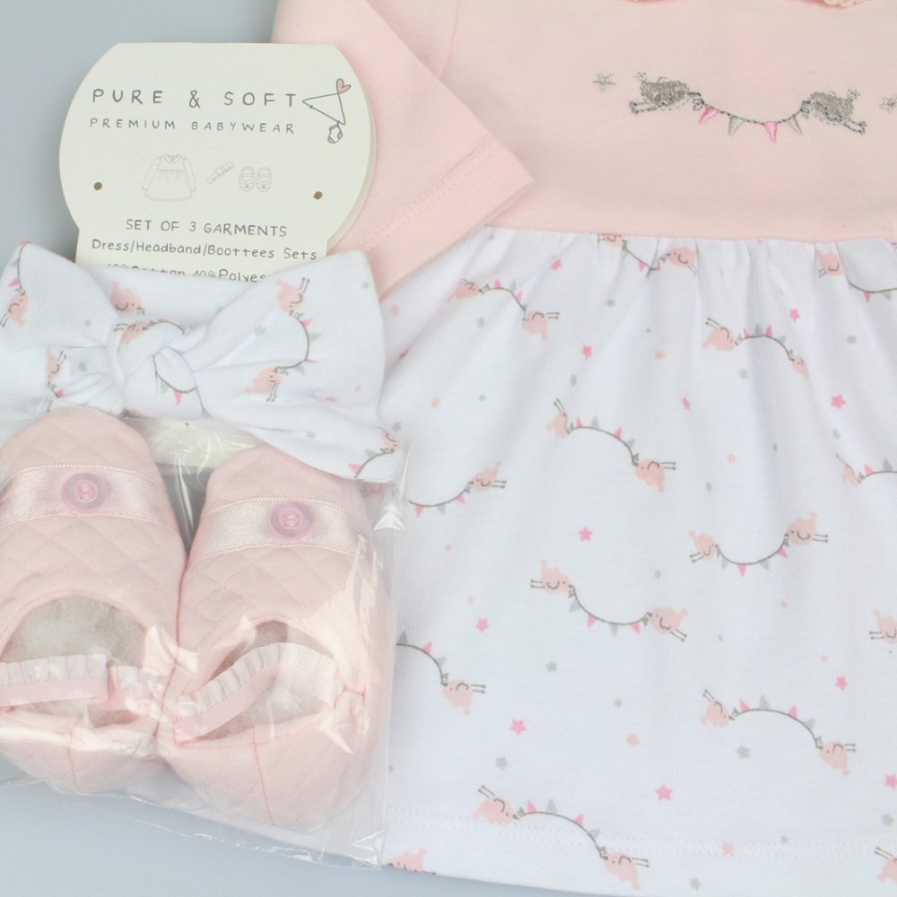 M14279: Baby Girls Dress Headband & Bootees Outfit (NB-3 Months)