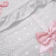 Broderie Anglaise Padded Buggy LinerColour: PinkMaterial: 65% Polyester, 35% CottonInternal: 100% Polyester WaddingCan be used on 99% of Pushchairs, Travel Systems, Prams Strollers and Buggies.Machine washable.Easy to FitMade in England, UK