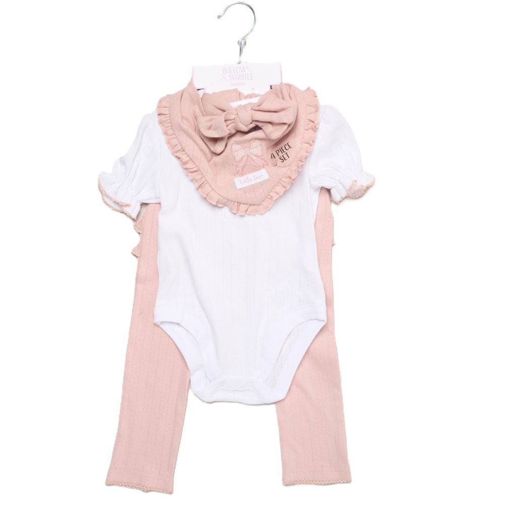 H14330NB: Baby Girls 4 Piece Ribbed Outfit (0-9 Months)